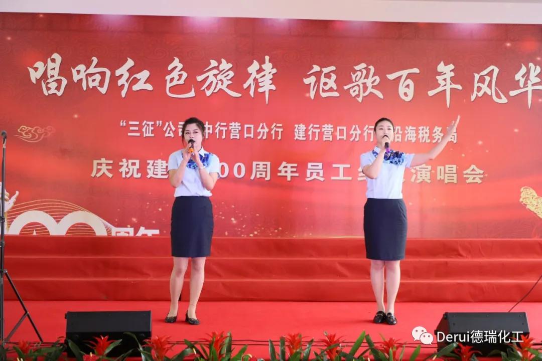 “三征”系六家公司、中行營口分行、建行營口分行、沿海稅務(wù)局的員工分別以大合唱、小合唱、獨唱、二重唱等形式演唱了《映山紅》、《稅徽下的我們》、《打靶歸來+黃河大合唱》、《祖國祖國不落的太陽》、《不忘初心》、《大中國》、《彈起我心愛的土琵琶》、《今天是你的生日,我的中國》、《社會主義好+沒有共產(chǎn)黨就沒有新中國》等經(jīng)典紅色歌曲。